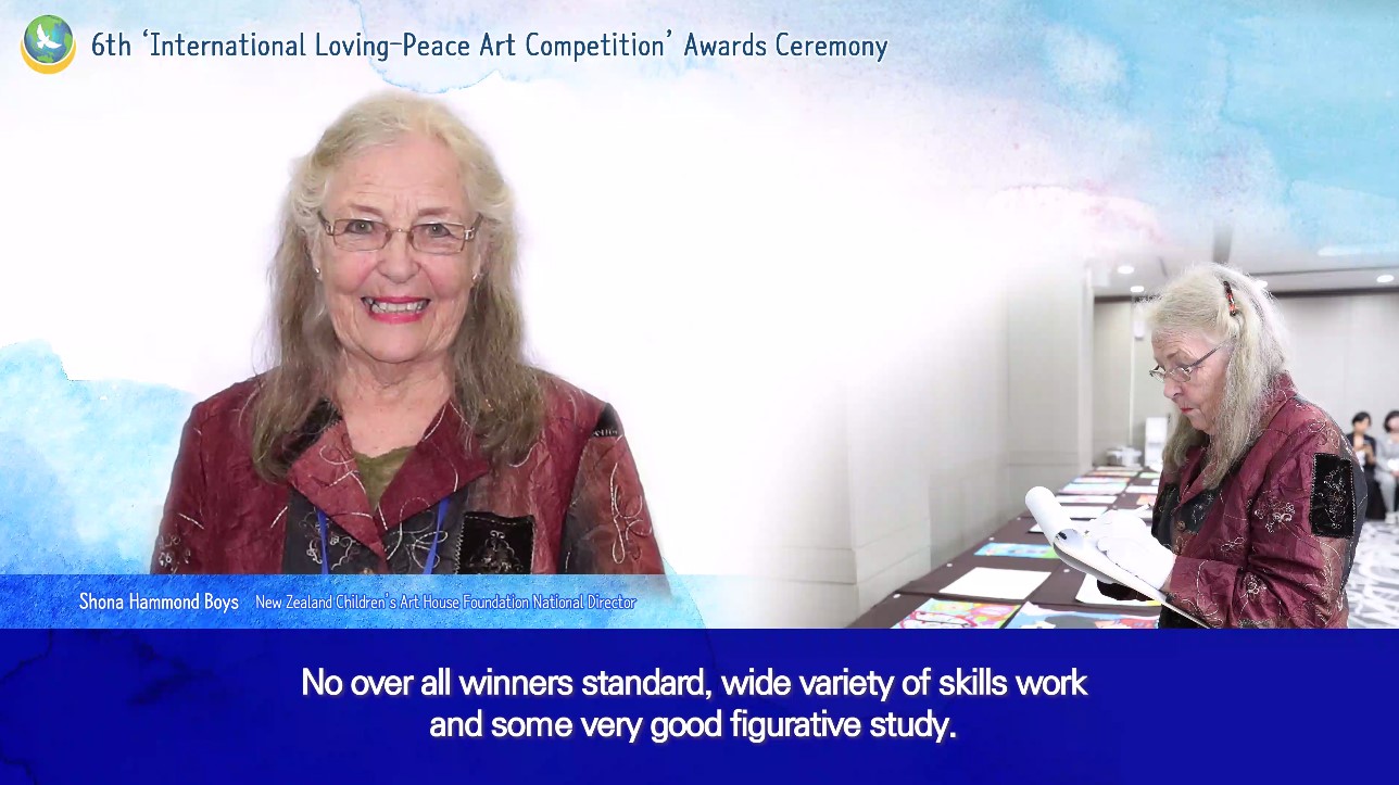 The International Women’s Peace Group (IWPG, Chairwoman Hyun Sook Yoon) held the final award ceremony of the 6th International Loving-Peace Art Competition online on November 23. The ceremony was simultaneously interpreted into 11 languages, including Spanish and Korean, for 800 participants, including award winners, parents, and IWPG staff.