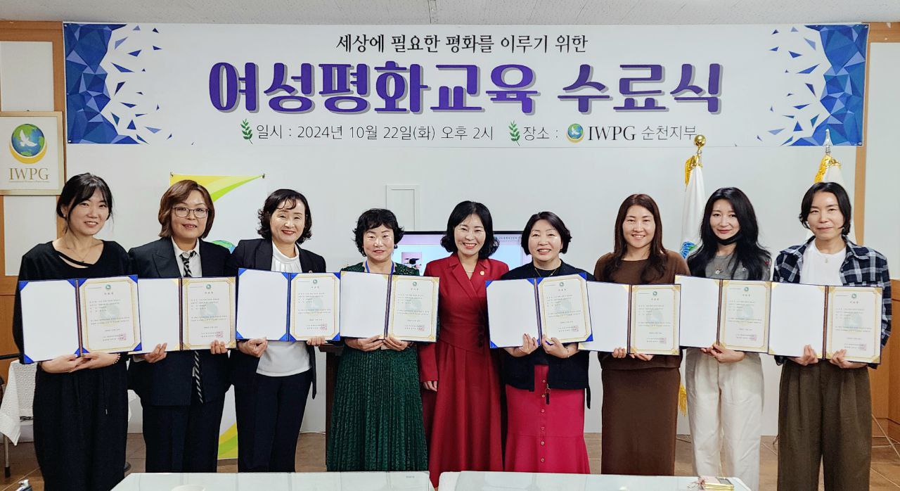 지난 10월 22일에는 IWPG 순천지부(지부장 정진아)가 PLTE 수료식을 개최했는데요. 이번 수료식 역시 평화 리더십을 배양하고 글로벌 평화 운동에 기여할 수 있는 여성 인재들을 배출한 뜻깊은 자리가 되었습니다. 수료식에 참석한 회원들은 평화를 실천하기 위한 결의를 다지며 앞으로도 지역사회에서 평화를 전파하는 데 적극 나설 것을 다짐했습니다.